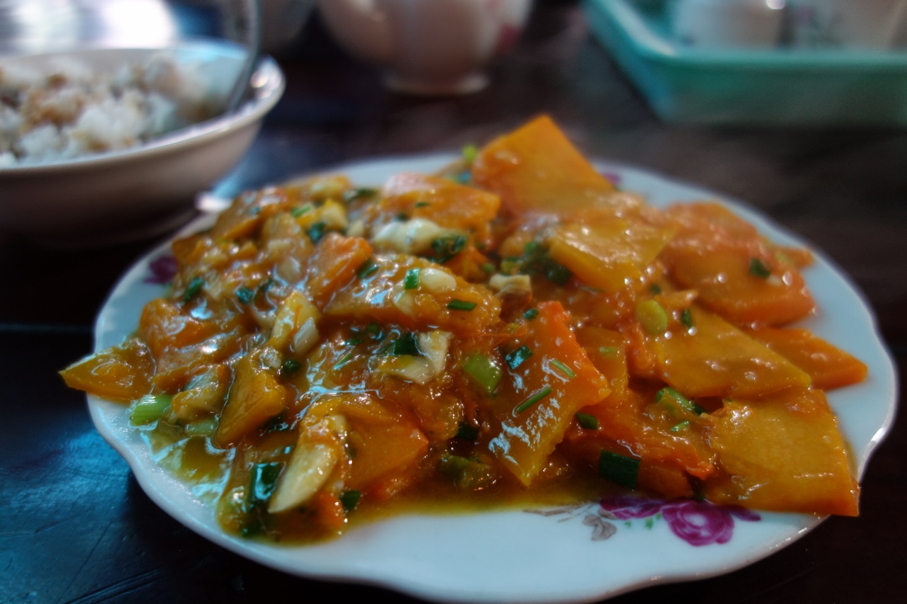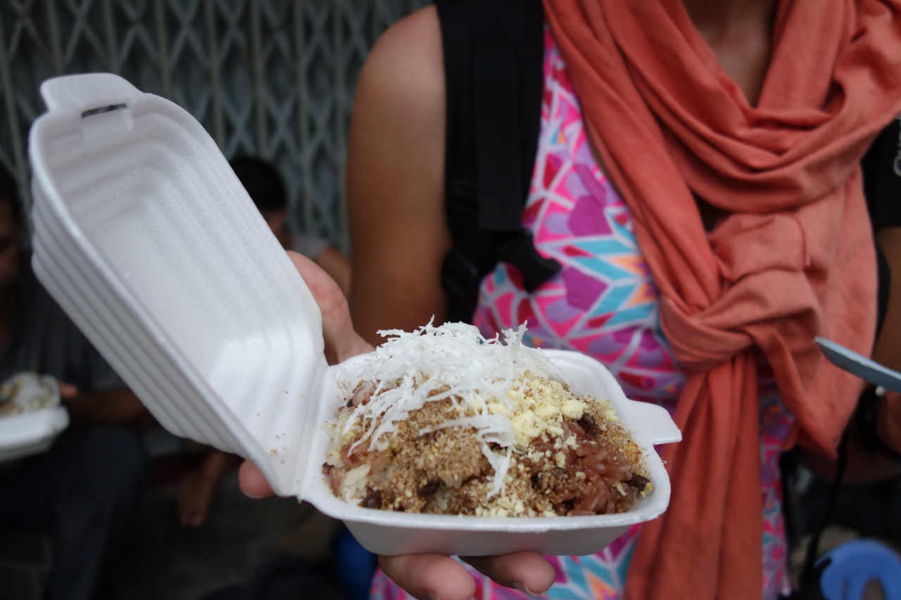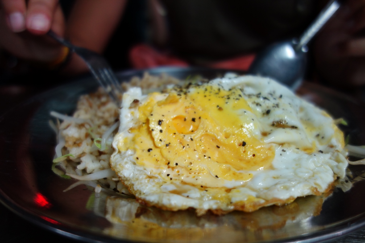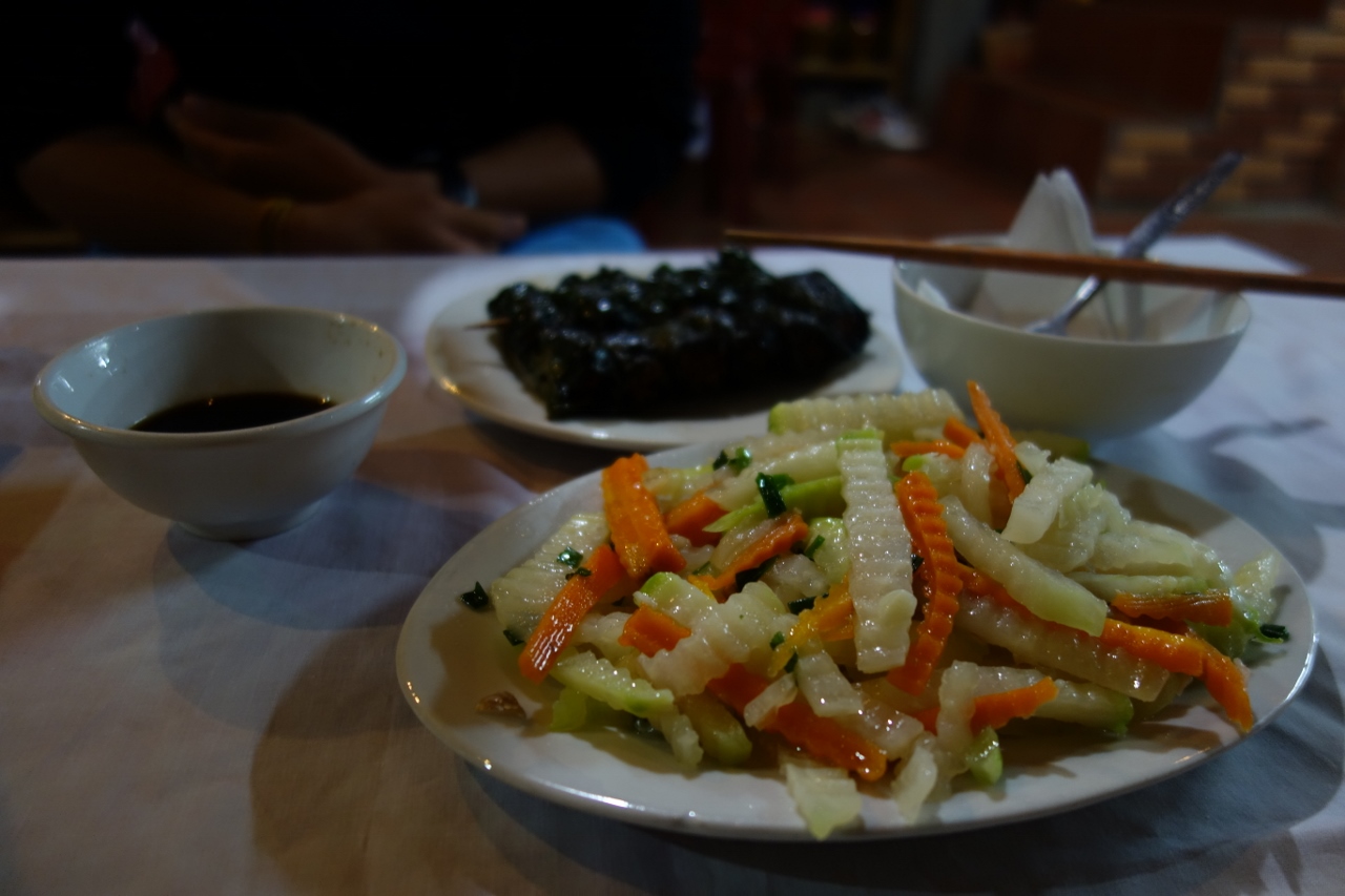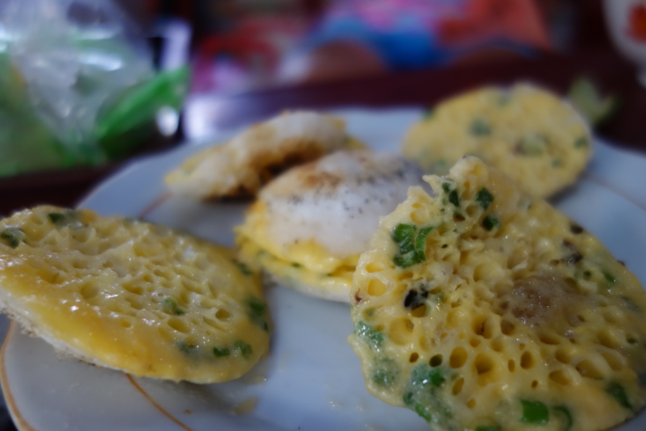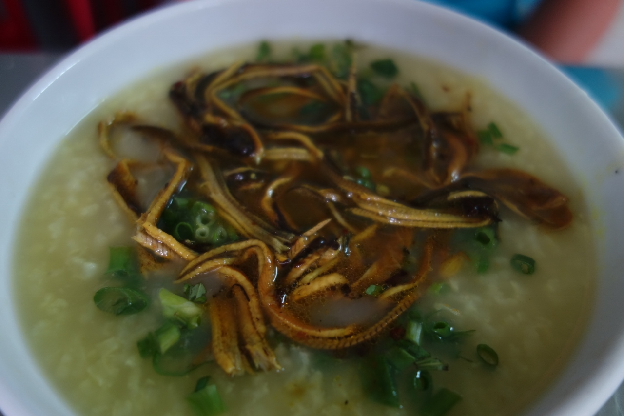 Riz, oeufs, légumes et paté, et même soupe de riz